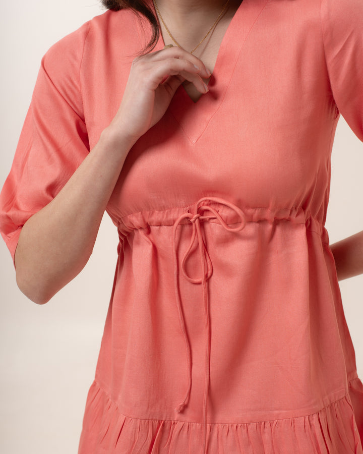 Details: High Waist With Gathered Tier, Adjustable Waist-tie